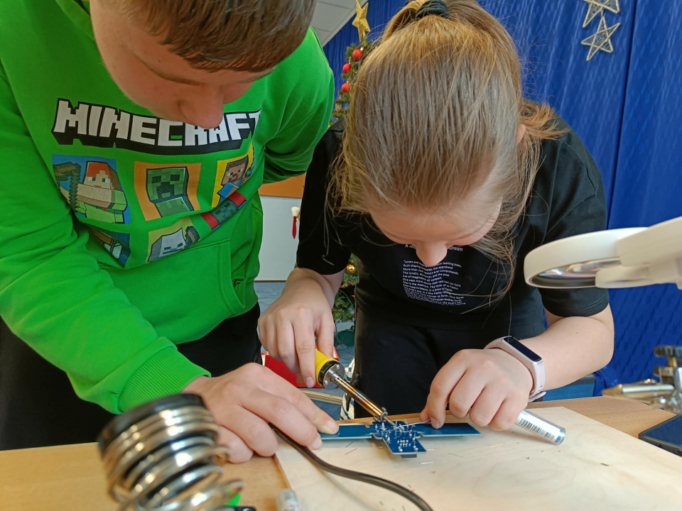 Proces lutowania wymagał dużego skupienia, ale jednocześnie sprawiał uczniom wiele satysfakcji. Efektem ich pracy było stworzenie w pełni funkcjonalnego urządzenia, które generowało sygnały dźwiękowe i świetlne. Dzięki temu uczniowie mogli w praktyce wykorzystać poznany alfabet Morse’a, nadając i odbierając proste komunikaty.