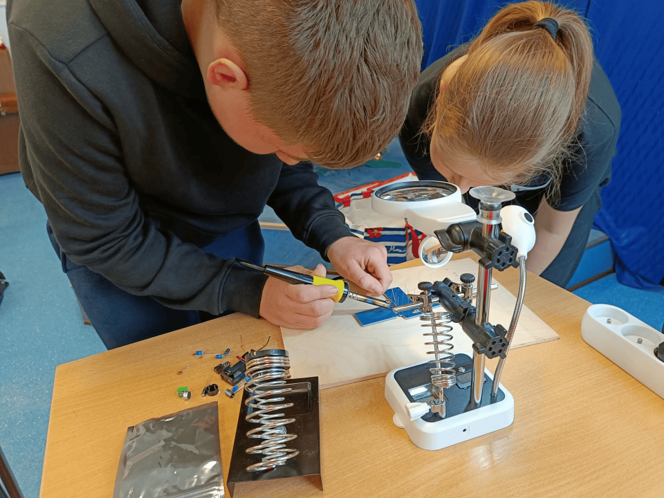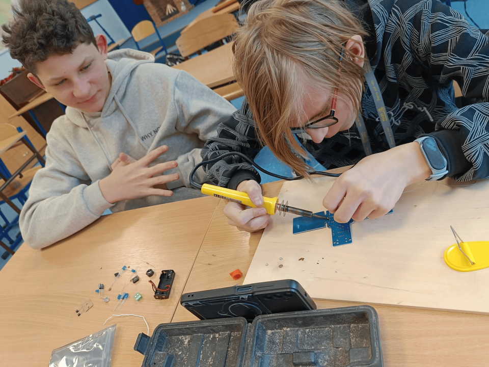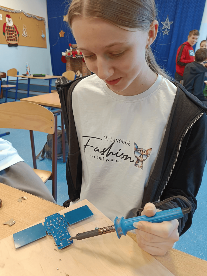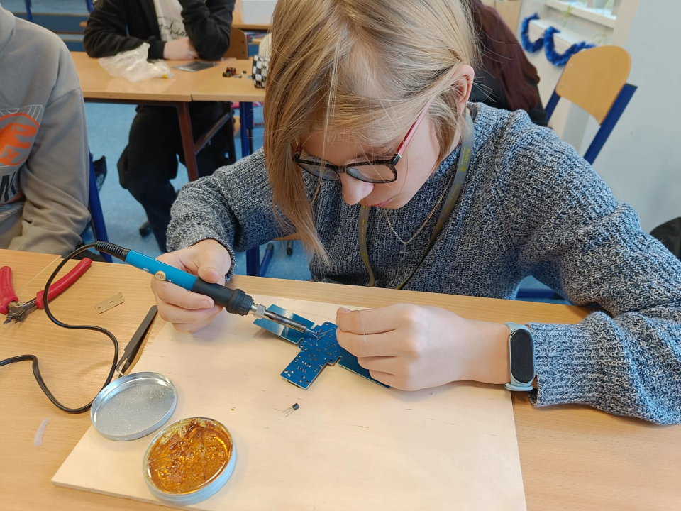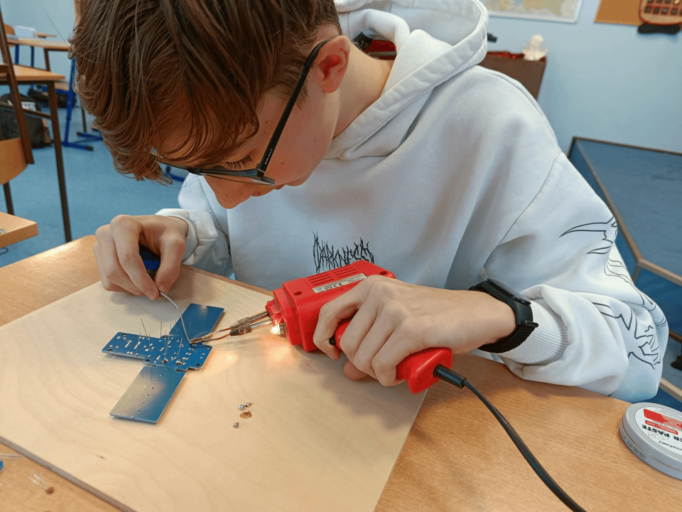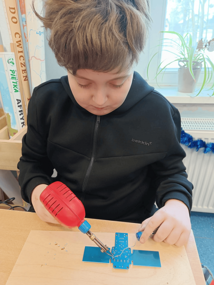 - rozwijanie umiejętności technicznych, w tym lutowania i budowy prostych układów,