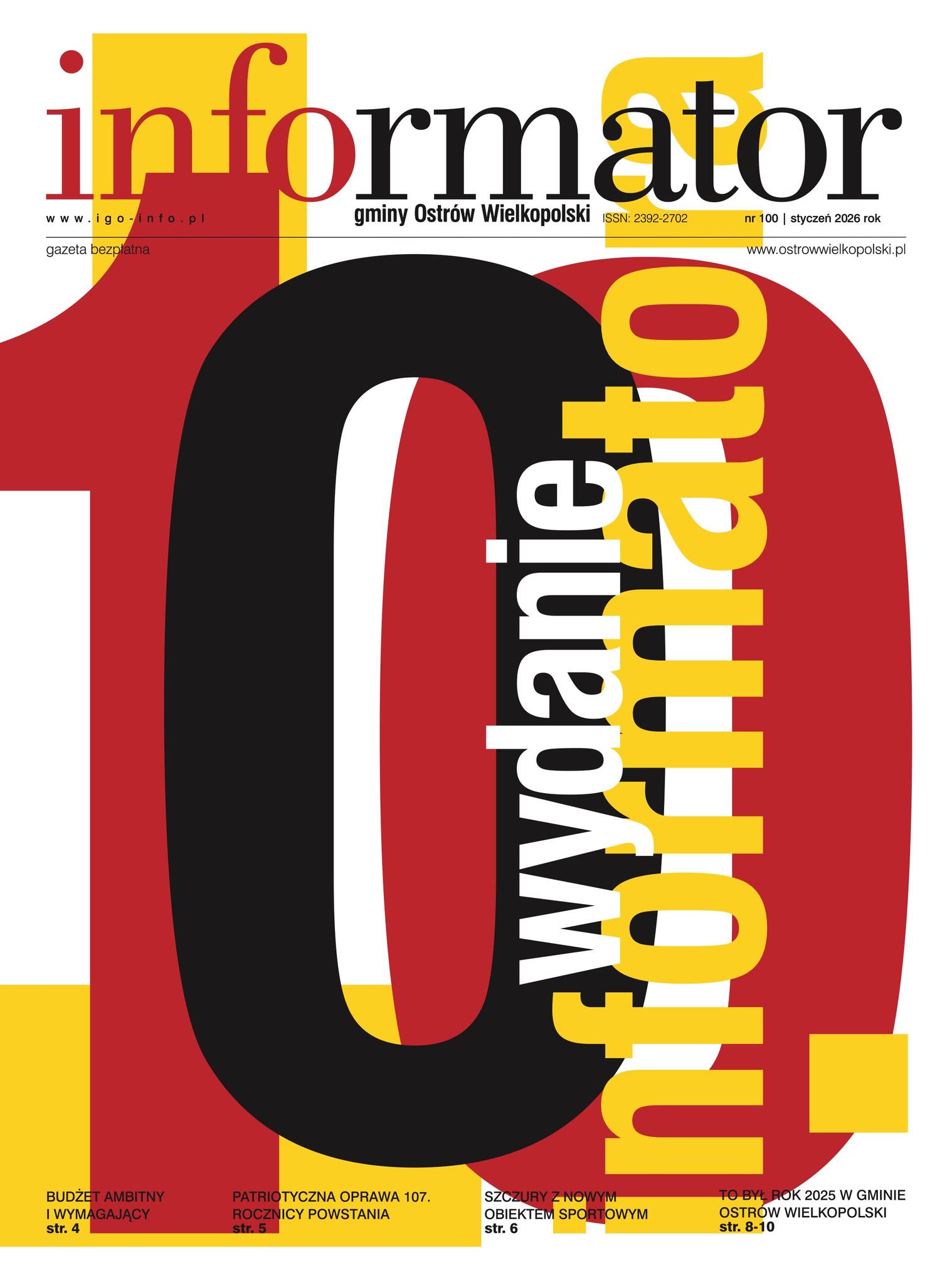 Z dumą oddajemy w Państwa ręce setne, jubileuszowe wydanie naszego gminnego miesięcznika jakim jest Informator gminy Ostrów Wielkopolski. Informator to wyjątkowa kronika życia lokalnej społeczności. Od dziesięciu lat jesteśmy z Państwem i od dziesięciu lat…