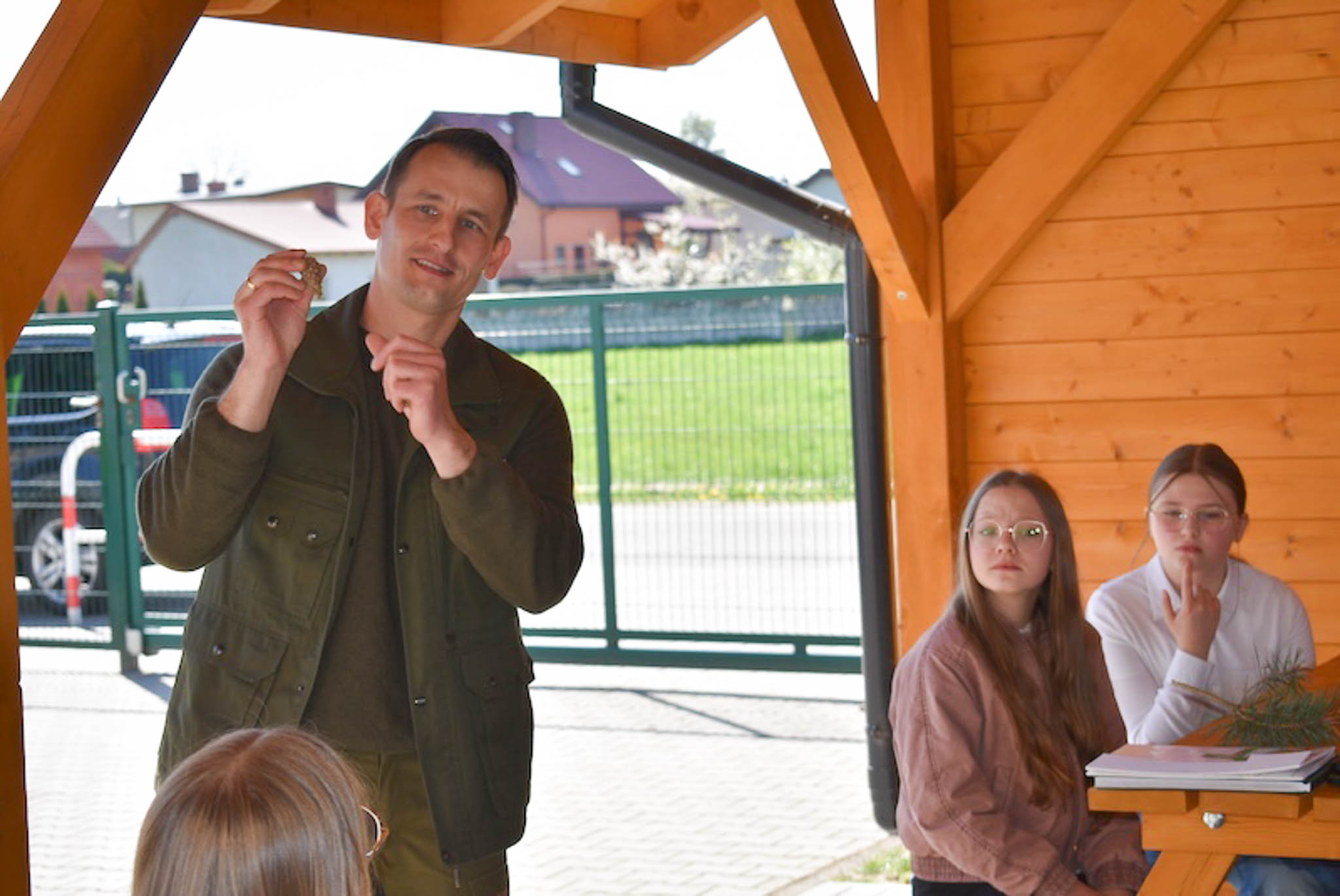 Zanim ogłoszono wyniki, uczestnicy mieli okazję wziąć udział w spotkaniu edukacyjnym z Kamilem Brzaną z Nadleśnictwa Taczanów. Prelekcja, nawiązująca do Dnia Ziemi, była ciekawym uzupełnieniem wiedzy o środowisku geograficznym i jego ochronie. Dodatkową atrakcją był występ uczennic klasy trzeciej – Bogny, Mai, Zosi, Marysi, Nataszy i Neli, które zaprezentowały utwory muzyczne przygotowane pod kierunkiem Lilianny Giernalczyk.