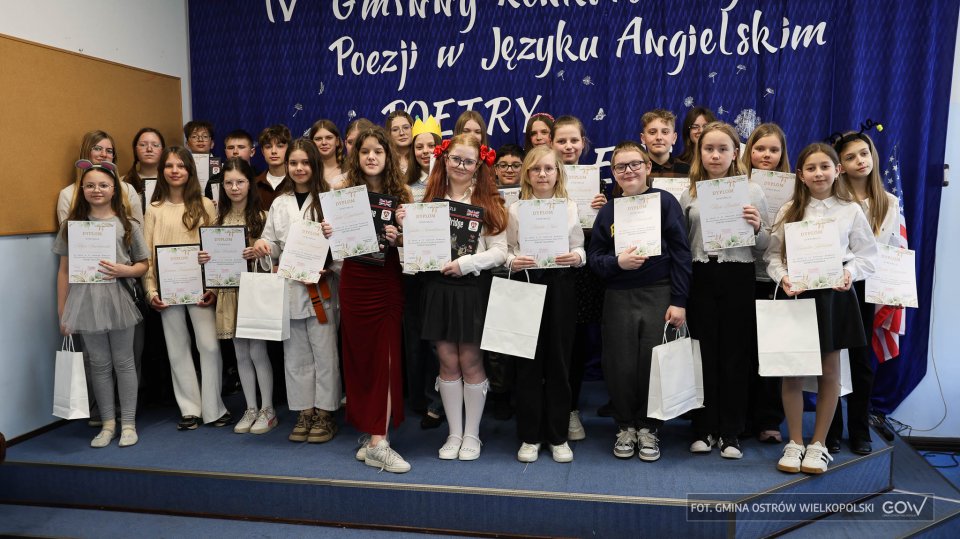 Kilkunastu uczniów reprezentujących różne szkoły z całej gminy Ostrów Wielkopolski wzięło udział w finale IV Gminnego Konkursu Recytatorskiego Poezji w Języku Angielskim „Poetry Challange”. Nagrody zostały ufundowane przez Gminę Ostrów Wielkopolski oraz Szkołę Podstawową im. Józefa Lipskiego w Szczurach.